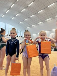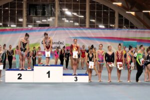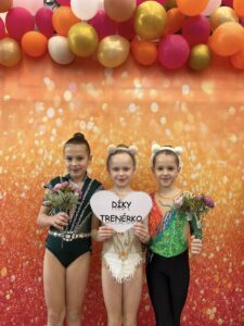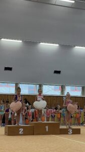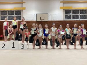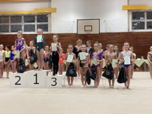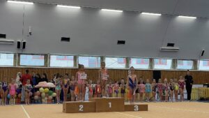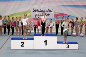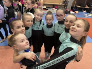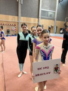 Po velikonoční přestávce se břeclavské moderní gymnastky o víkendu rozjely hned na dva závody. V sobotu 11.dubna se konal tradiční Baby cup v Jedovnici. V I. kategorii kombinovaného programu moderní gymnastiky cvičí děvčata ročníku narození 2018 povinné švihadlo a volnou sestavu bez náčiní. Břeclav reprezentovaly dvě gymnastky. Zlatou medaili si zaslouženě odvezla Mia Kalinová, bronz brala Liliana Pavúčková. O rok starší gymnastky cvičí stejné sestavy a SK MG Břeclav reprezentovala dvě děvčata. Volnou sestavu bez náčiní i povinné švihadlo nejlépe z celého startovního pole zvládla Rozárka Rezová a vybojovala pro SK MG Břeclav další zlato. Adéla Andělová udělala pár chybiček a skončila těsně pod stupni vítězů na nepopulárním čtvrtém místě. Gymnastky ročníku narození 2016 startují ve II. kategorii KP a cvičí povinnou sestavu bez náčiní a volné švihadlo. V této kategorii reprezentovala náš oddíl Veronika Birčáková a v kvalitní konkurenci po chybce ve švihadle získala krásnou stříbrnou medaili. O rok starší gymnastky Daniela Baranovská, Julie Marcinizsynová a Elen Maršálková nepředvedly stoprocentní výkony a obsadily páté, osmé a patnácté místo.