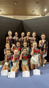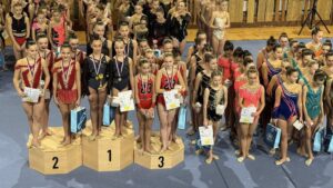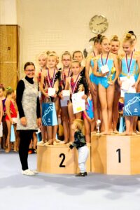 SK MG Břeclav vyjel o víkendu na III. kolo Českomoravského poháru společných skladeb linie B až do dalekých Mariánských Lázní. V 0.B kategorii startovaly „Indiánky“ Liliana Pavúčková, Štěpánka Kurková, Alexandra Straková, Adéla Andělová, Karolína Janotová, Sofie Jungmannová a Rozárka Rezová. Obě provedení náročné a choreograficky zdařilé skladby zacvičily na výbornou a zaslouženě získaly skvělé stříbrné medaile za pražskými Letuškami. S pěti obručemi cvičí prvním rokem v I. kategorii Veronika Bradáčová, Veronika Birčáková, Tina Radkovičová, Julie Marciniszynová, Daniela Baranovská a Elen Maršálková. Společnou skladbu s názvem „Guzowianky“ v prvním provedení zvládly výborně, v druhém předvedení udělaly jednu velkou chybu. Přesto v součtu obou známek získaly holky fantastické stříbrné medaile. V kategorii III. cvičí Michaela Frýdková, Sára Kratochvílová, Julie Juráčková, Karla Kejlová, Kamila Blinda a Sofie Švendová s pěti míči skladbu s názvem „NBA“. První provedení zvládly bez chyb a měly našlápnuto na stříbro. V druhém předvedení se bohužel nevyvarovaly chyb, přesto se radovaly z bronzových medailí. Nejstarší gymnastky ve IV. kategorii „Čardáš“ Adéla Baranovská, Jolana Koulová, Ela Majerníková a Laura Kratochvílová zvládly první provedení hezky a vypadalo, že by to mohlo konečně cinknout. Bohužel se jim v druhém provedení udělal uzel na švihadle a holky skončily na nepopulárním čtvrtém místě.